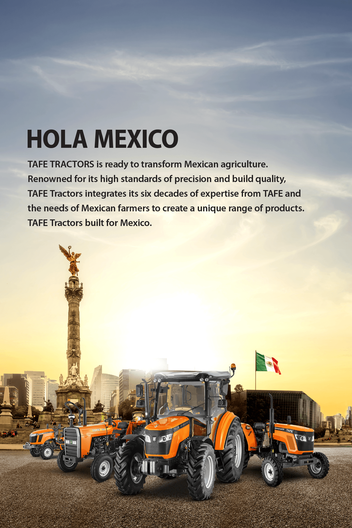 TAFE’s product range includes 20-30 HP mechanical and hydrostatic compact tractors and a full range of utility tractors from 35 HP to 110 HP. The range includes basic as well as advanced version of tractors, open station and cab tractors. With its long and rich experience in international markets, TAFE produced tractors are well known and have found favour with Mexican customers for a number of years now. As it pursues its growth strategy, the development of the Mexican market marks a significant development after the recent successful launch of its range of tractors in Europe.