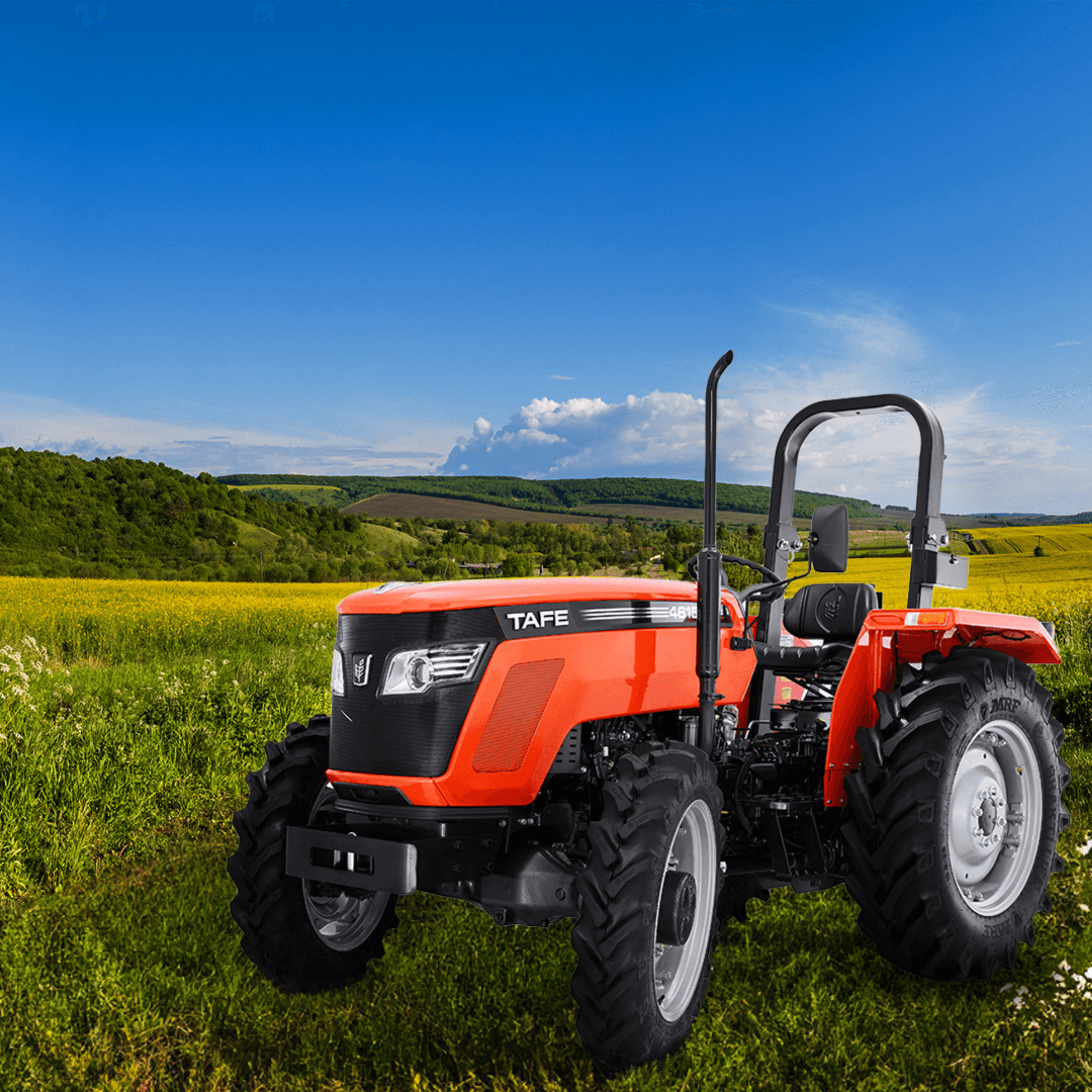 Presenting the versatile TAFE 4615, which has a powerful 47 HP engine that provides remarkable power for any kind of work. Its 8 + 2 speed gearbox technology guarantees excellent performance and seamless shifting. The hydraulics with automated draft detection provide accuracy and effectiveness in all operations. It provides smooth control and safety with oil-immersed brakes and a live PTO. Its power steering further improves handling and ease of mobility. With a lifting capability of 1700 KG, it is ideal for industrial and agricultural applications.