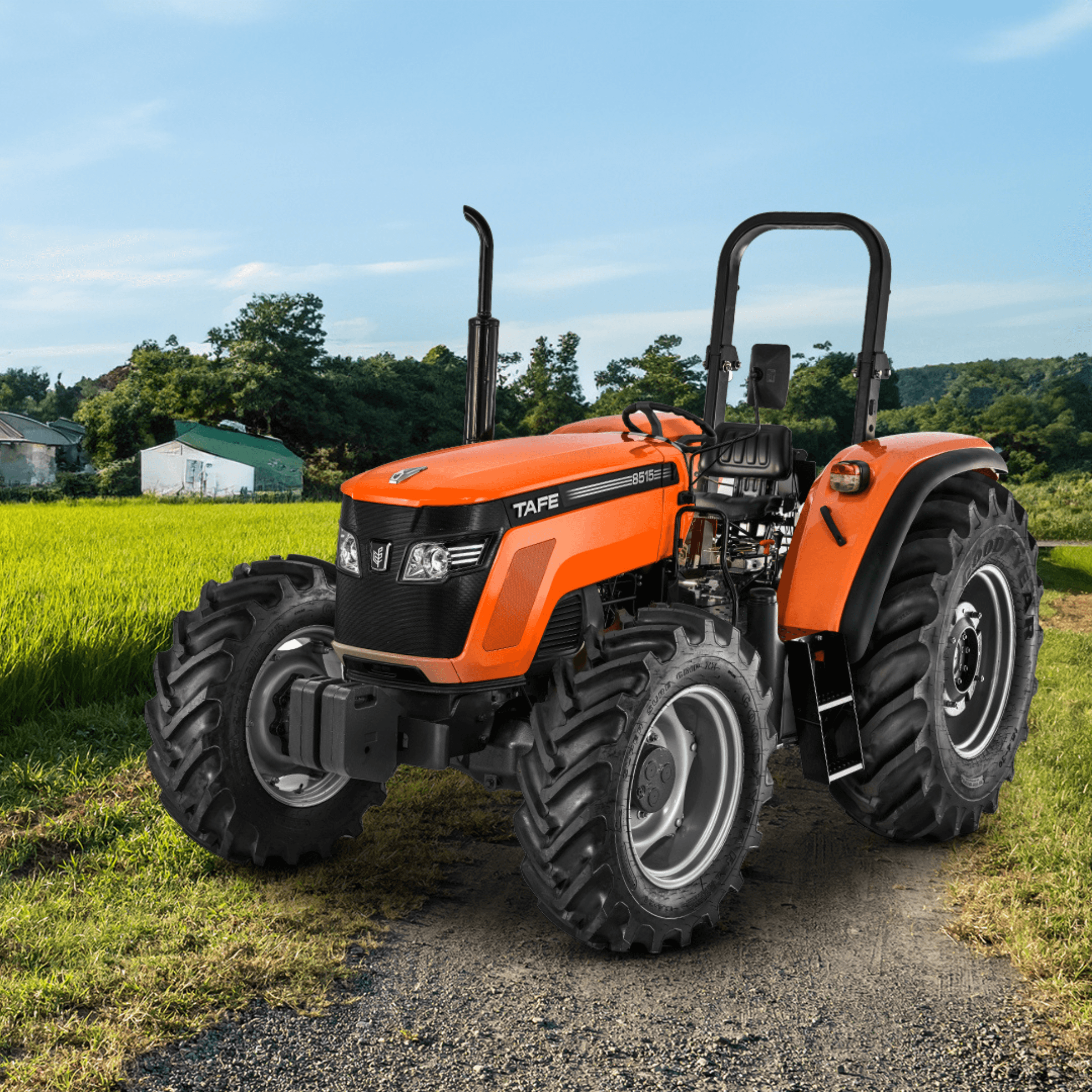 Get the job done right, choose this feature-packed tractor. The TAFE 8515 features a 4-cylinder 80 hp engine offering the muscle needed for demanding tasks, a versatile 10-speed transmission & 4WD for any terrain. Automatic draft sensing hydraulics ensure precise implementation control, while the uninterrupted PTO keeps attachments running smoothly. Oil-immersed brakes & power steering provide confident control & comfort. A high lifting capacity translates to a versatile and efficient workhorse for your agricultural needs.